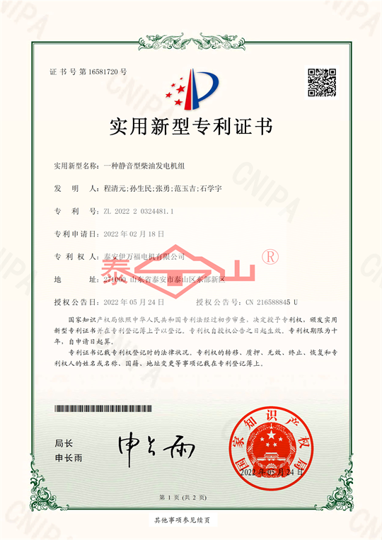 喜報(bào):泰安伊萬福電機(jī)有限公司獲得六項(xiàng)實(shí)用新型專利證書,并獲得2022年度泰安市專精特新中小企業(yè)稱號(hào)